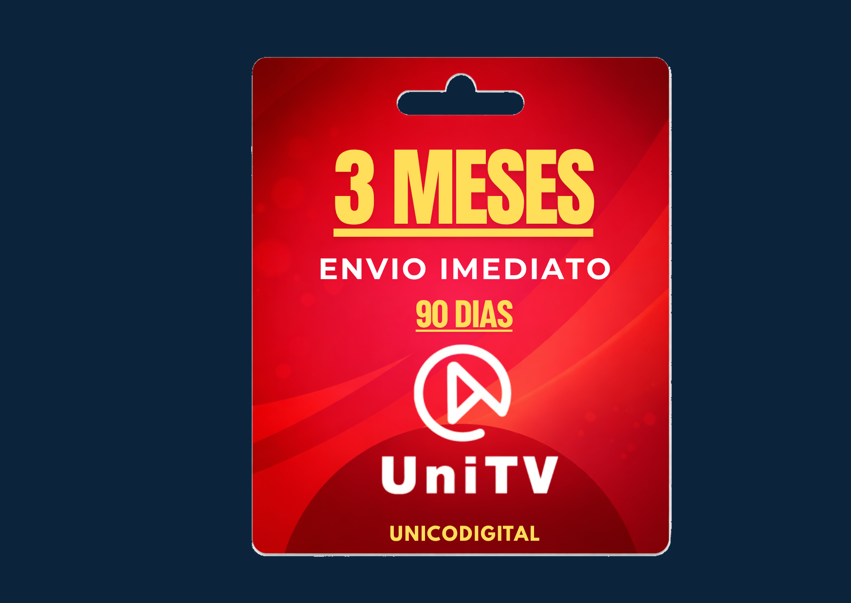 Licença digital Unitv de 90 dias, com envio automático da chave de ativação após a confirmação do pagamento.